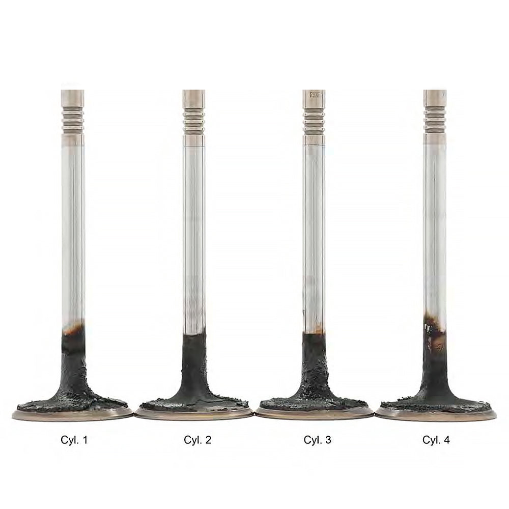 Utilizando el método de prueba ASTM D6201 con combustible de primera calidad sin tratar, el motor que funcionaba con combustible regular desarrolló una importante acumulación de carbón en la cámara de combustión con el tiempo. Los resultados mostraron una acumulación significativa de carbón en las válvulas de admisión, lo que demuestra la suciedad que puede acumularse un motor con el tiempo debido al funcionamiento normal.